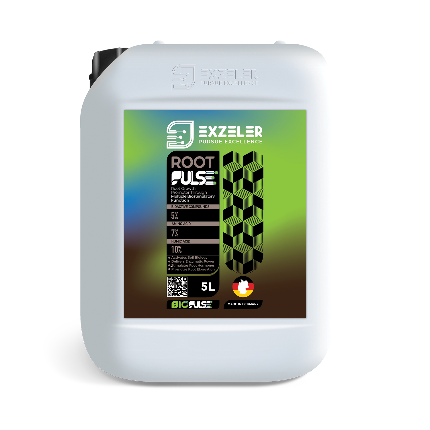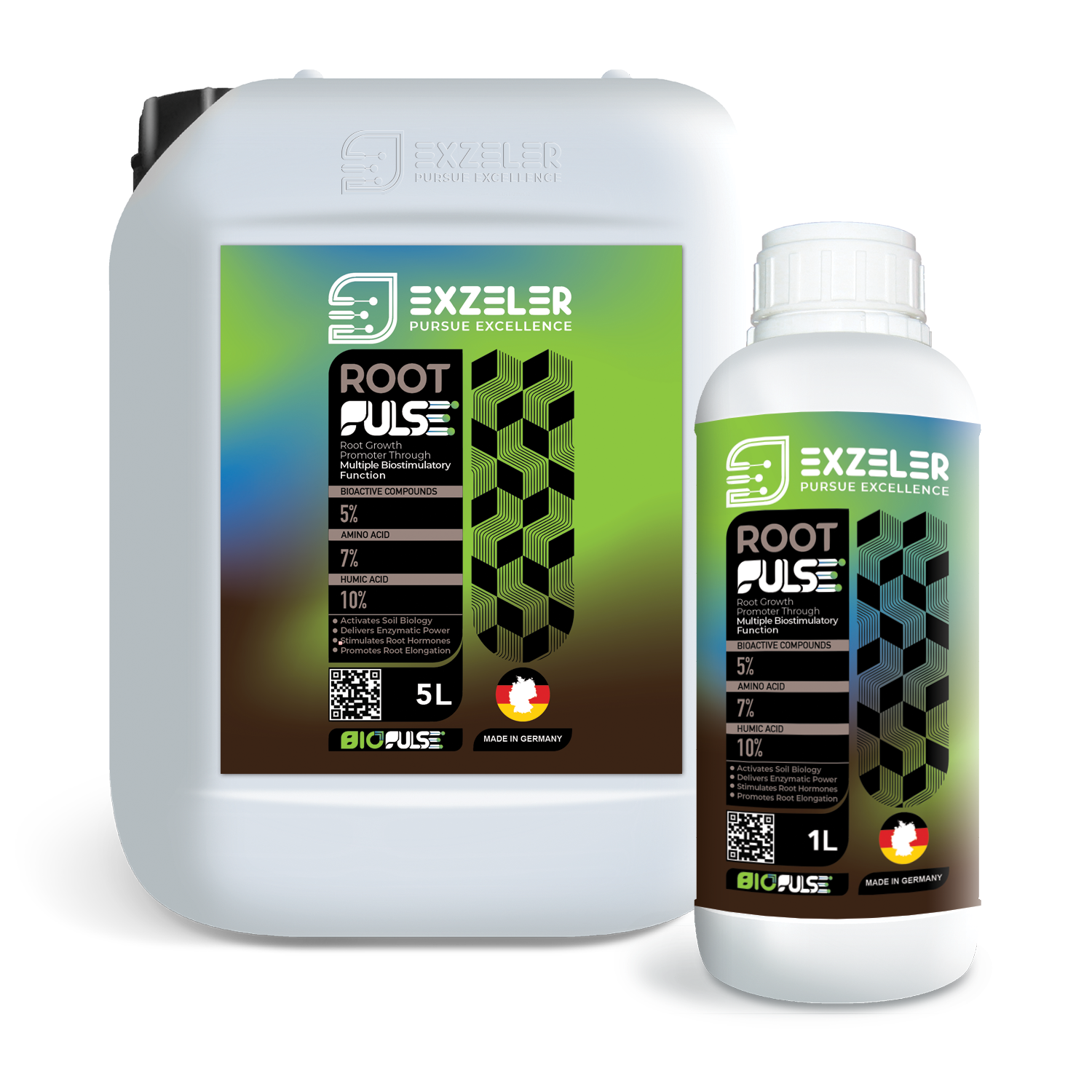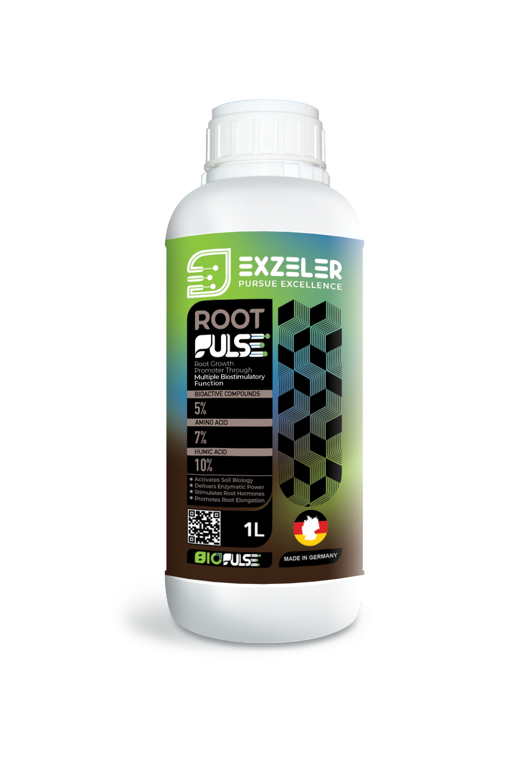 RootPULSE is Exzeler’s next-generation root-zone activator, designed to enhance early plant development, nutrient uptake, and long-term crop resilience under stress. Powered by a stabilized microbial consortium, enriched with enzymes, natural hormones, and plant-based amino acids, RootPULSE unlocks vigorous rooting and root-to-shoot balance.